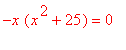 Thus, x = 0, x = 5, and x = -5. The graph below confirms these solutions.